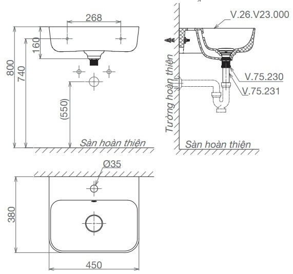 Chậu Rửa Lavabo Viglacera V23 Treo Tường